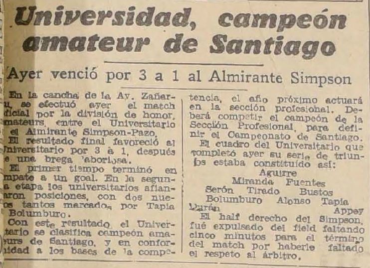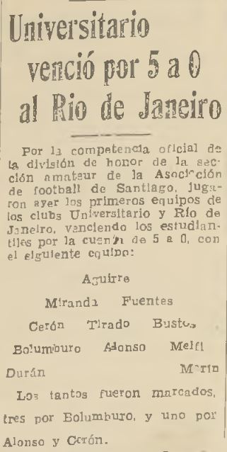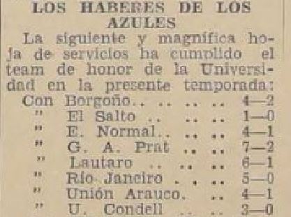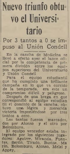 19/8/1934 | Escuela de Medicina | Unión Condell | 3x0 | Alonso(2), Bolumburu | [5] |