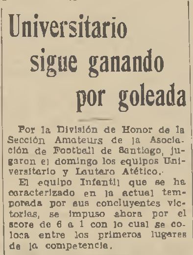 5/8/1934 | Escuela de Medicina | Lautaro Atlético | 6x1 | n/d | [3] |