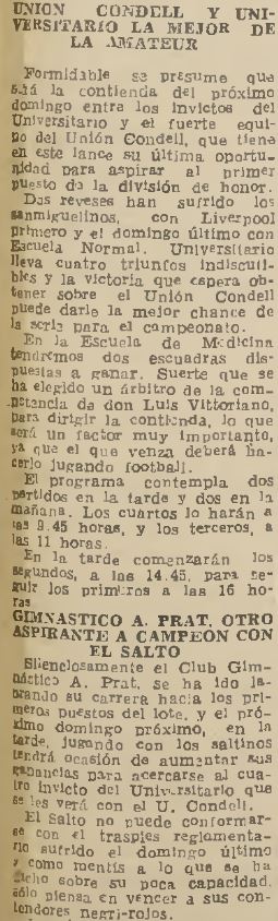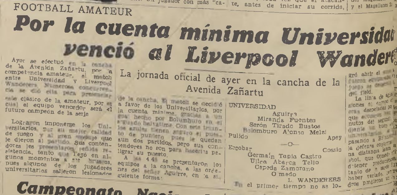 18/11/1934 | Escuela de Medicina | Liverpool Wanderers | 1x0 | Bolumburu | [8] |