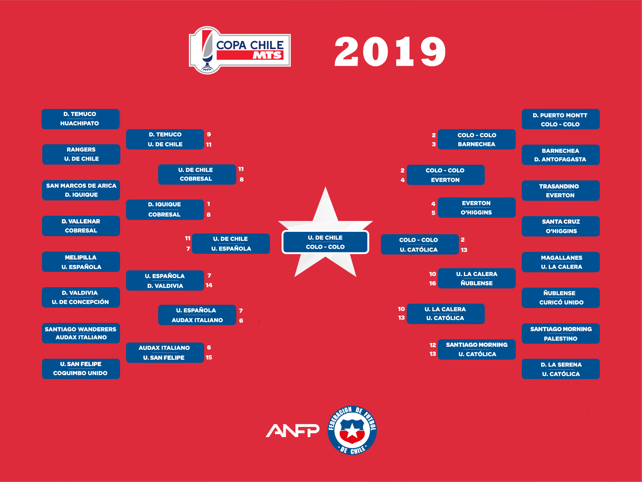 en cuenta los resultados de Copa Chile desde la edición 2008-2009 hasta la del 2018. Universidad de Chile, Palestino, Colo Colo y Audax Italiano quedaron como cabezas de serie.